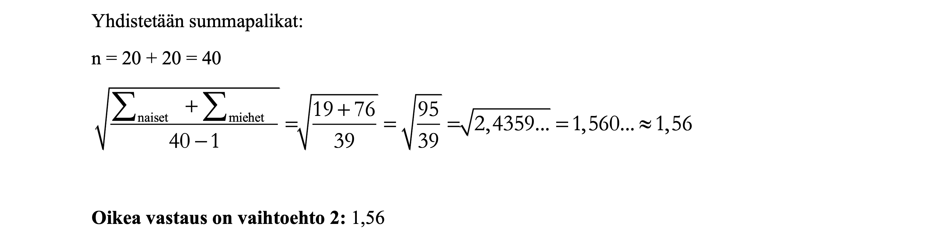 Ratkaisut: Tilastolliset menetelmät