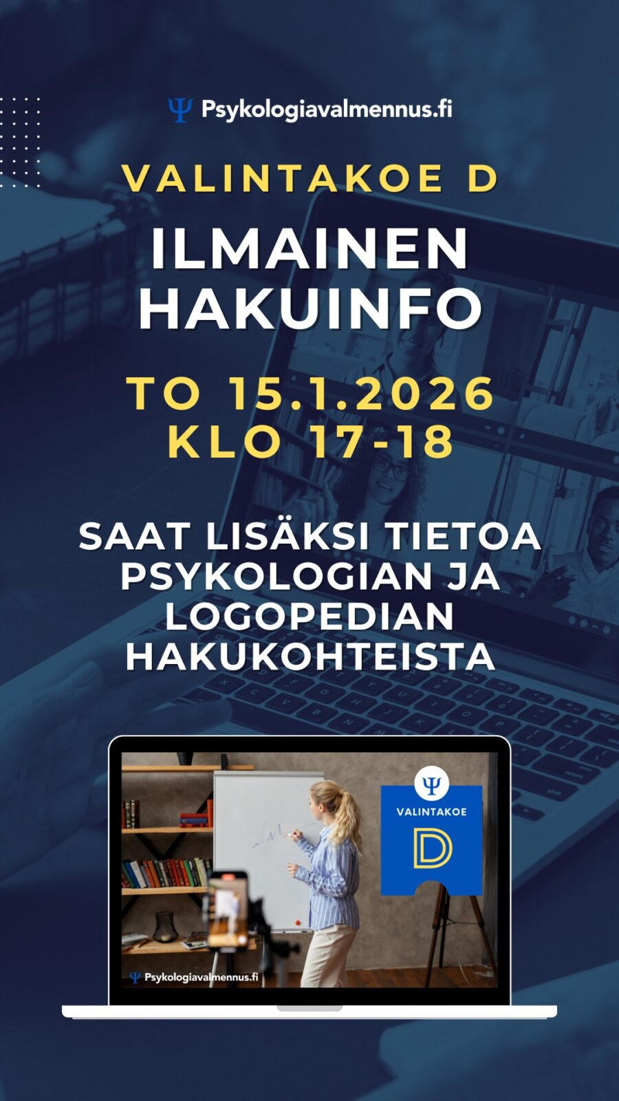 Valintakoe D hakuinfo to 15.1.2026 klo 17-18